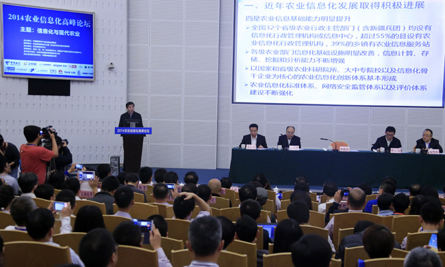 本網(wǎng)訊:10月25日,2014農(nóng)業(yè)信息化高峰論壇在山東青島舉辦。農(nóng)業(yè)部副部長陳曉華在講話時指出,信息化對于加快轉(zhuǎn)變農(nóng)業(yè)發(fā)展方式、建設(shè)現(xiàn)代農(nóng)業(yè)具有重要的牽引和驅(qū)動作用,是現(xiàn)代農(nóng)業(yè)的制高點(diǎn)。陳曉華認(rèn)為,近些年來農(nóng)業(yè)信息化發(fā)展取得了積極進(jìn)展。農(nóng)業(yè)信息服務(wù)體系建設(shè)得到加強(qiáng),涉農(nóng)網(wǎng)站已達(dá)4萬多家,12316服務(wù)熱線已覆蓋全國1/3以上的農(nóng)戶,信息進(jìn)村入戶試點(diǎn)工作正在10個。ㄊ校22個縣有力推進(jìn)。現(xiàn)代信息技術(shù)在農(nóng)業(yè)領(lǐng)域應(yīng)用取得突破,農(nóng)業(yè)物聯(lián)網(wǎng)應(yīng)用示范和區(qū)域試驗(yàn)工程在北京等8。▍^(qū)、市)取得重要階段性成果,農(nóng)產(chǎn)品電子商務(wù)年交易額已超過500億元。同時,農(nóng)業(yè)信息資源開發(fā)利用水平和農(nóng)業(yè)信息基礎(chǔ)能力明顯提升。陳曉華指出,當(dāng)前農(nóng)業(yè)信息化發(fā)展正面臨難得的機(jī)遇和諸多的挑戰(zhàn)。從機(jī)遇看,首先中央有明確要求。黨的十八大作出了“四化同步”發(fā)展的戰(zhàn)略部署,習(xí)近平總書記強(qiáng)調(diào)“沒有信息化,就沒有現(xiàn)代化”,黨的十八屆三中全會作出了全面深化改革的決定,強(qiáng)調(diào)要使市場在資源配置中起決定性作用和更好發(fā)揮政府作用,推動了市場主體的廣泛參與和先進(jìn)要素向農(nóng)業(yè)聚積,為農(nóng)業(yè)信息化打開了新的空間,增添新的活力。其次農(nóng)民有強(qiáng)烈需求。農(nóng)業(yè)現(xiàn)代化的推進(jìn)越來越依賴信息化的發(fā)展,迫切需要加快發(fā)展農(nóng)業(yè)信息化,推動農(nóng)業(yè)發(fā)展方式實(shí)現(xiàn)根本性轉(zhuǎn)變,突破資源、環(huán)境約束,確保國家糧食安全和主要農(nóng)產(chǎn)品有效供給,促進(jìn)新型經(jīng)營主體應(yīng)用新品種、新技術(shù),強(qiáng)化農(nóng)產(chǎn)品質(zhì)量安全監(jiān)管和質(zhì)量追溯體系建設(shè),發(fā)展壯大生產(chǎn)性和生活性服務(wù)業(yè),有效滿足農(nóng)民的信息需求。從挑戰(zhàn)看,我國農(nóng)業(yè)信息化與先進(jìn)發(fā)達(dá)國家和其他行業(yè)相比,還存在基礎(chǔ)比較薄弱、創(chuàng)新能力不足、統(tǒng)籌力度不夠等現(xiàn)實(shí)問題,需要下決心盡快解決! £悤匀A提出,到2020年,農(nóng)業(yè)信息化工作要努力實(shí)現(xiàn)信息化基礎(chǔ)設(shè)施基本完備,信息資源開放共享取得突破,信息技術(shù)廣泛應(yīng)用,信息公共服務(wù)惠及農(nóng)村農(nóng)民,農(nóng)業(yè)信息人才隊(duì)伍建設(shè)得到明顯加強(qiáng),農(nóng)業(yè)管理信息化水平和網(wǎng)絡(luò)安全保障能力大幅提升,更好地滿足現(xiàn)代農(nóng)業(yè)發(fā)展需要。 陳曉華強(qiáng)調(diào),當(dāng)前和今后一個時期,農(nóng)業(yè)信息化重點(diǎn)要做好五項(xiàng)工作:一是加快推進(jìn)信息進(jìn)村入戶,并逐步覆蓋到全國更多的村;二是繼續(xù)抓好農(nóng)業(yè)物聯(lián)網(wǎng)試驗(yàn)示范工程,力求在研發(fā)和應(yīng)用方面取得突破;三是推動信息資源開放共享,促進(jìn)農(nóng)業(yè)信息資源創(chuàng)新應(yīng)用,充分挖掘數(shù)據(jù)價值;四是大力發(fā)展農(nóng)業(yè)電子商務(wù),形成線上與線下相結(jié)合、農(nóng)產(chǎn)品進(jìn)城與農(nóng)業(yè)生產(chǎn)資料和農(nóng)村消費(fèi)品下鄉(xiāng)雙向流動的模式;五是加強(qiáng)基礎(chǔ)設(shè)施和條件建設(shè),讓農(nóng)民公平享受信息化發(fā)展成果。