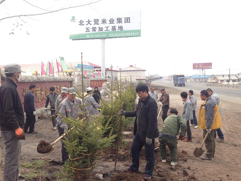 2015 年4月19日,五常制米廠員工都早早的就來到單位門口忙活起來,走近一看原來大家是在忙著種樹。由于五常制米廠環(huán)境較為艱苦,為了改善這一局面,米廠領(lǐng)導班子決定給廠區(qū)綠化。利用周末時間,米廠領(lǐng)導帶領(lǐng)全體員工進行植樹,大家都非常積極參加勞動,將基層員工能吃苦肯出力的精神表現(xiàn)的淋漓盡致。正因為全體員工心往一處想,勁兒往一處使,再多的活兒在大家面前也顯得微不足道了。僅僅用了一天的時間,大家就完成了廠區(qū)外及廠區(qū)內(nèi)的綠化任務(wù)?粗鴱S區(qū)生機勃勃的新面孔,員工的臉上都露出了自豪和欣慰的笑容。