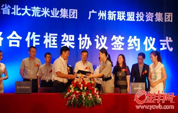 北大荒米業(yè)集團(tuán)一直致力于生產(chǎn)安全高端大米,好米源自北大荒,這個(gè)宣傳口號(hào)不僅是自身產(chǎn)品的特點(diǎn),也是米業(yè)人一直守護(hù)的原則。讓百姓吃上放心安全的大米是我們的義務(wù)與職責(zé)。廣州分公司自組建以來(lái)嚴(yán)格按照集團(tuán)的發(fā)展目標(biāo),方向,把東北優(yōu)質(zhì)大米帶到了南方市場(chǎng),讓南方的百姓嘗到了東北最優(yōu)質(zhì)的大米。并且同廣東省多家國(guó)企,大型連鎖超市,農(nóng)批市場(chǎng)等合作,全面展開(kāi)銷(xiāo)售工作。如今中國(guó)大米行業(yè)競(jìng)爭(zhēng)激烈,如果只單一的遵守以前固有的銷(xiāo)售模式,必然是要落后,突破原有模式是當(dāng)務(wù)之急,此次同廣州新聯(lián)盟合作就是一次創(chuàng)新,通過(guò)新聯(lián)盟集團(tuán)電子信息平臺(tái),利用網(wǎng)上交易渠道,推出高端大米,爭(zhēng)取銷(xiāo)量與口碑雙贏。此次簽約儀式后,廣州新聯(lián)盟集團(tuán)將正式啟動(dòng)國(guó)內(nèi)最頂尖優(yōu)質(zhì)大米的生產(chǎn)銷(xiāo)售流程,預(yù)計(jì)最快在今年中秋佳節(jié)前,消費(fèi)者即可享受到“聯(lián)盟元素”頂級(jí)優(yōu)質(zhì)大米。