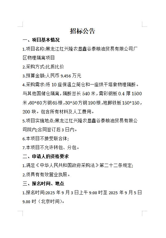 鑫谷泰糧油貿(mào)易有限公司廠區(qū)物理隔離項(xiàng)目
