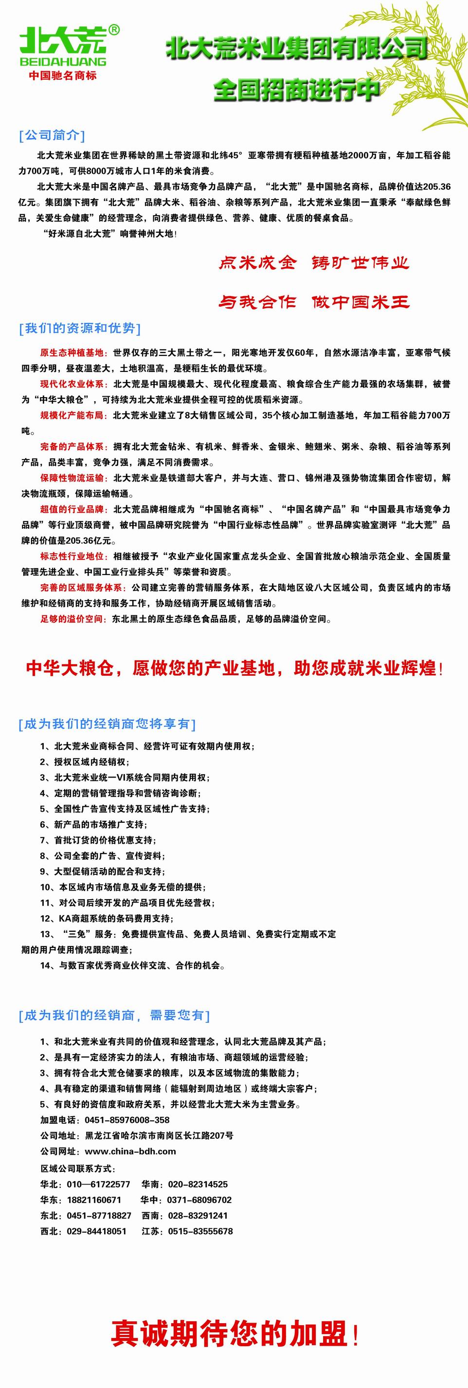 黑龍江省北大荒米業(yè)集團(tuán)有限公司全國(guó)招商